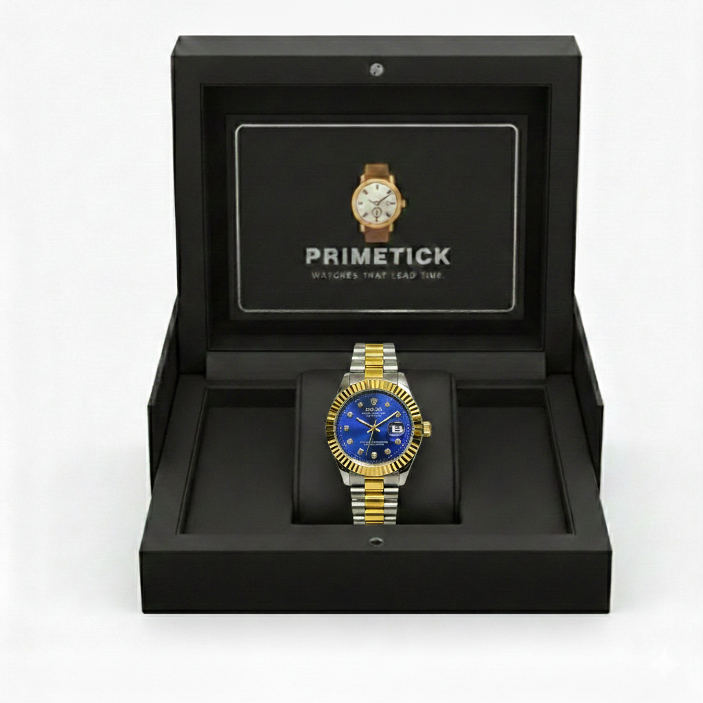 Dial: Deep Blue dial with crystal hour markers for a refined luxury look